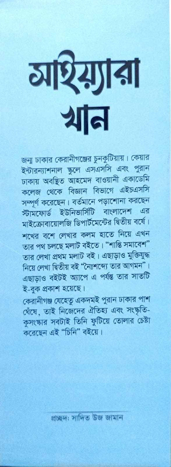 A: বইটি লিখেছেন সময়ের জনপ্রিয় লেখিকা সাইয়্যারা খান (Saiyara Khan)। ✍️