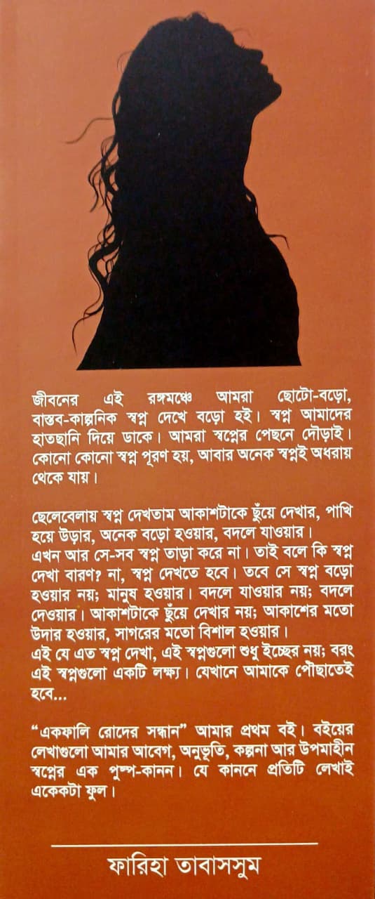 একফালি রোদের সন্ধান—জীবনের অন্তহীন অমাবস্যা চিরে এক চিলতে আশার আলোর গল্প। এম. উসমান তাঁর এই অসাধারণ লেখনীর মাধ্যমে পাঠকদের শেখান কীভাবে কঠিন সময়েও ভেঙে না পড়ে বিশ্বাসের ওপর ভর করে দাঁড়িয়ে থাকতে হয়। এটি কেবল একটি বই নয়, বরং বিষণ্ন মনে প্রশান্তির পরশ। ☀️✨