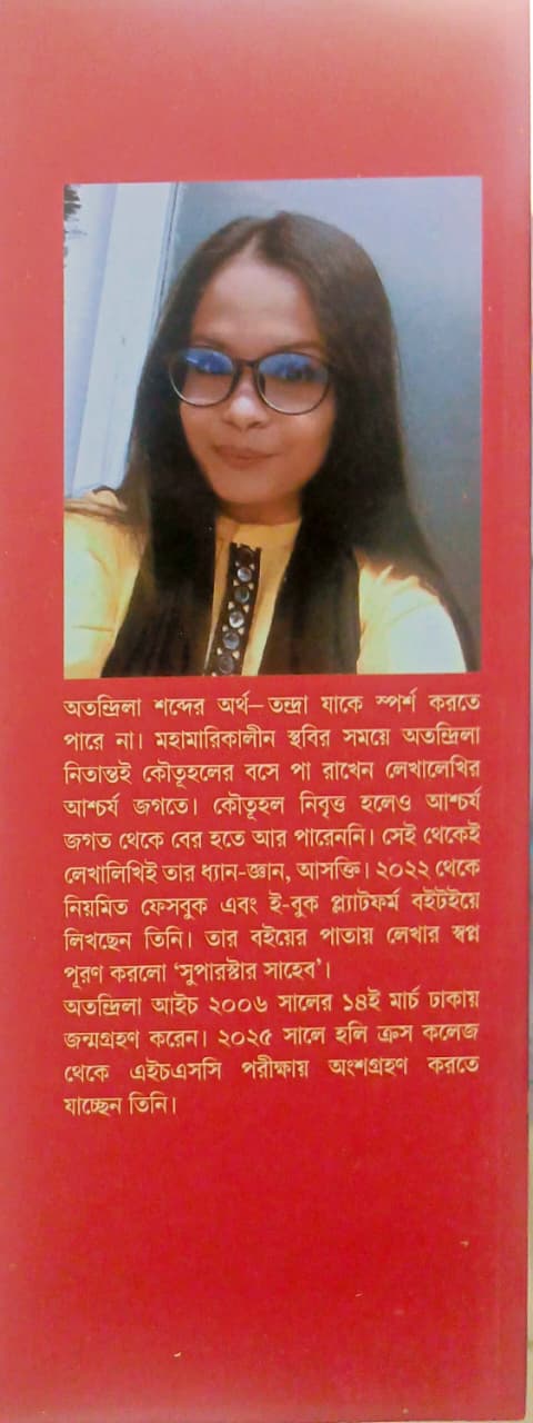 Superstar Shaheb বইটি কেবল একটি তারকার গল্প নয়, বরং পর্দার পেছনের রক্ত-মাংসের মানুষের আবেগ আর ভালোবাসার এক নিখুঁত চিত্রায়ন। অতন্দ্রিলা আইচ তাঁর সাবলীল লেখনীতে ফুটিয়ে তুলেছেন এমন এক গল্প, যা আপনাকে হাসাবে, কাঁদাবে এবং নতুন করে প্রেমে পড়তে শেখাবে। 🌟💖
