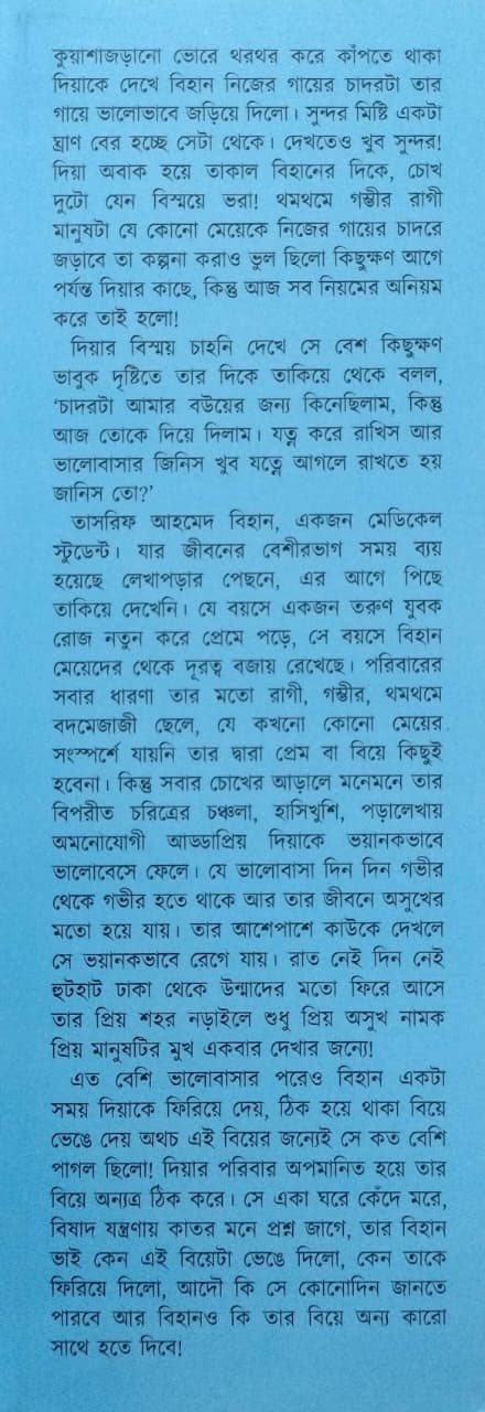 মৌসুমী আক্তার মৌ-এর লেখনীতে এই উপন্যাসটি কেবল একটি প্রেমের গল্প নয়, বরং এটি মনের গহীনে লালন করা এক "প্রিয় অসুখ" বা ভালোবাসার আবেশের প্রতিচ্ছবি। ভালোবাসার মানুষটি যখন নেশার মতো মিশে থাকে রক্তে, তখন সেই টানকে অস্বীকার করা অসম্ভব—ঠিক এই আবেগটুকুই বইটিতে ফুটে উঠেছে। 🌹